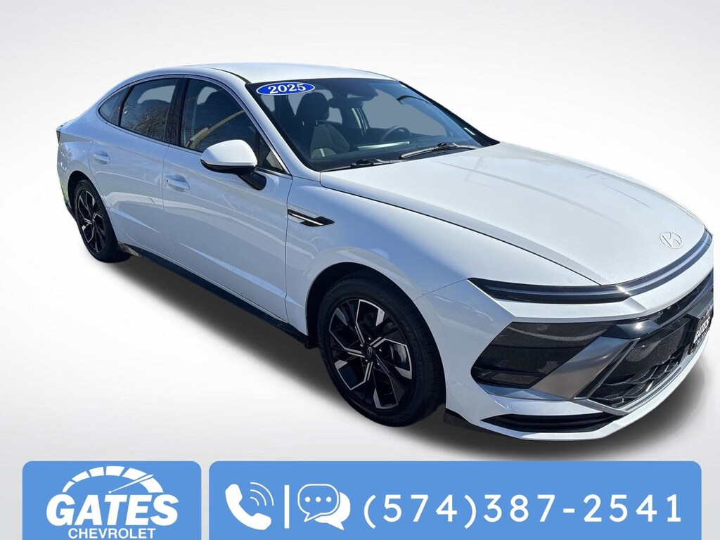 This vehicle is located at Gates Chevrolet in South Bend 311 E Ireland rd. South Bend, IN 46614.... Call/text 574-387-2541 for more info.- CUSTOMER FOR LIFE WARRANTY-ASK ABOUT IT! GATES HAS YOUR BACK!- Serenity White- WhiteDiscover the perfect blend of style, performance, and technology in this 2025 Hyundai Sonata SEL. With its sleek exterior design, advanced safety features, and impressive fuel efficiency, this sedan is the ultimate combination of form and function.Under the hood, the Sonata's I4 engine and 8-speed automatic transmission deliver a smooth and responsive driving experience, while the front-wheel-drive system provides confident handling on the road. With an EPA-estimated 25 city/36 highway MPG, this Sonata will keep you moving efficiently, mile after mile.Step inside and you'll be greeted by a well-appointed interior that prioritizes both comfort and technology. Heated front seats, dual-zone automatic climate control, and a premium audio system with Apple CarPlay and Android Auto integration ensure a premium driving experience. The spacious cabin and split-folding rear seats provide ample room for passengers and cargo, making this Sonata the perfect companion for your daily commute or weekend getaways.Safety is a top priority in the Sonata, with a comprehensive suite of advanced driver-assistance technologies, including Blind Spot Monitoring, Rear Cross-Traffic Alert, and Forward Collision-Avoidance Assist. You can drive with confidence, knowing that this Sonata is equipped to help keep you and your loved ones secure on the road.Whether you're in the market for a practical and efficient sedan or a vehicle that combines style, comfort, and cutting-edge features, this 2025 Hyundai Sonata SEL is an exceptional choice. Experience the difference for yourself and schedule a test drive today. We're confident you'll be impressed by the quality, performance, and value this Sonata has to offer.This Sonata is waiting for you at Gates Chevrolet in South Bend. Call or text 574-387-2541 to learn more and secure your opportunity to own this impressive vehicle.